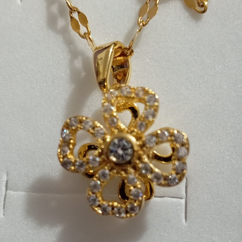 En GuiStore, cada pieza de bisutería es una expresión de estilo, sofisticación y calidad. Nuestra nueva colección de bisutería fina presenta diseños exclusivos como este colgante dorado en forma de flor, elaborado con acabados de alta precisión y piedras brillantes tipo diamante que capturan la luz con cada movimiento.